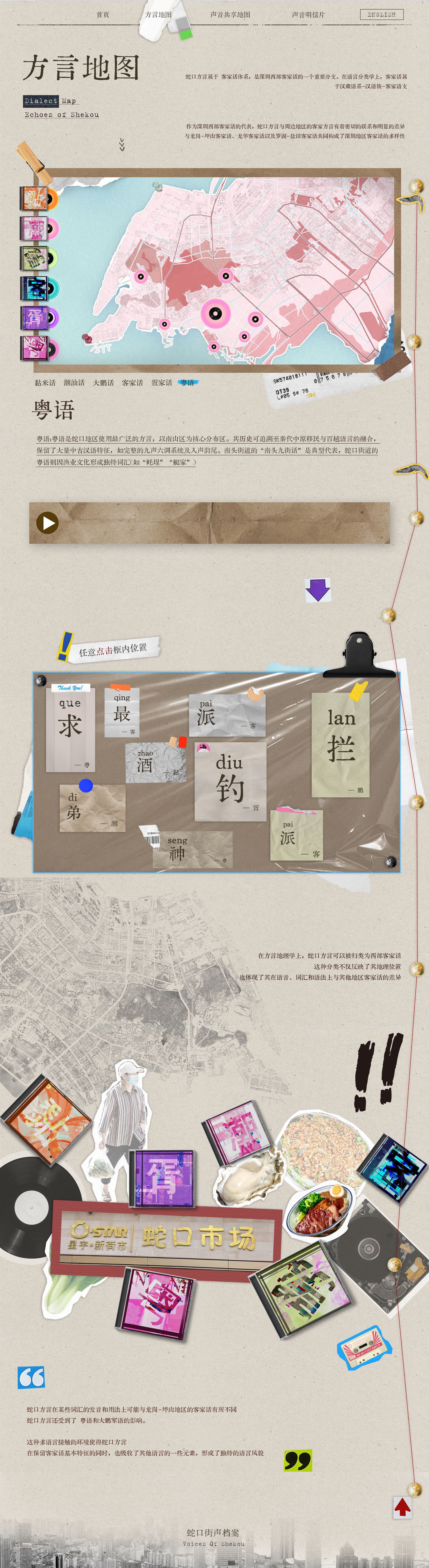 《蛇口街声档案》是一个结合声音与影像的城市记忆交互网站。 《蛇口街声档案》是一个以声音为核心媒介的城市记忆交互网站,致力于保存、展示蛇口地区独特的城市声音、历史影像与地方文化。项目从“声音是否能作为城市记忆的载体”出发,关注在城市快速发展空间更替之下,那些逐渐被遗忘的日常声音、方言语境与生活脉络。