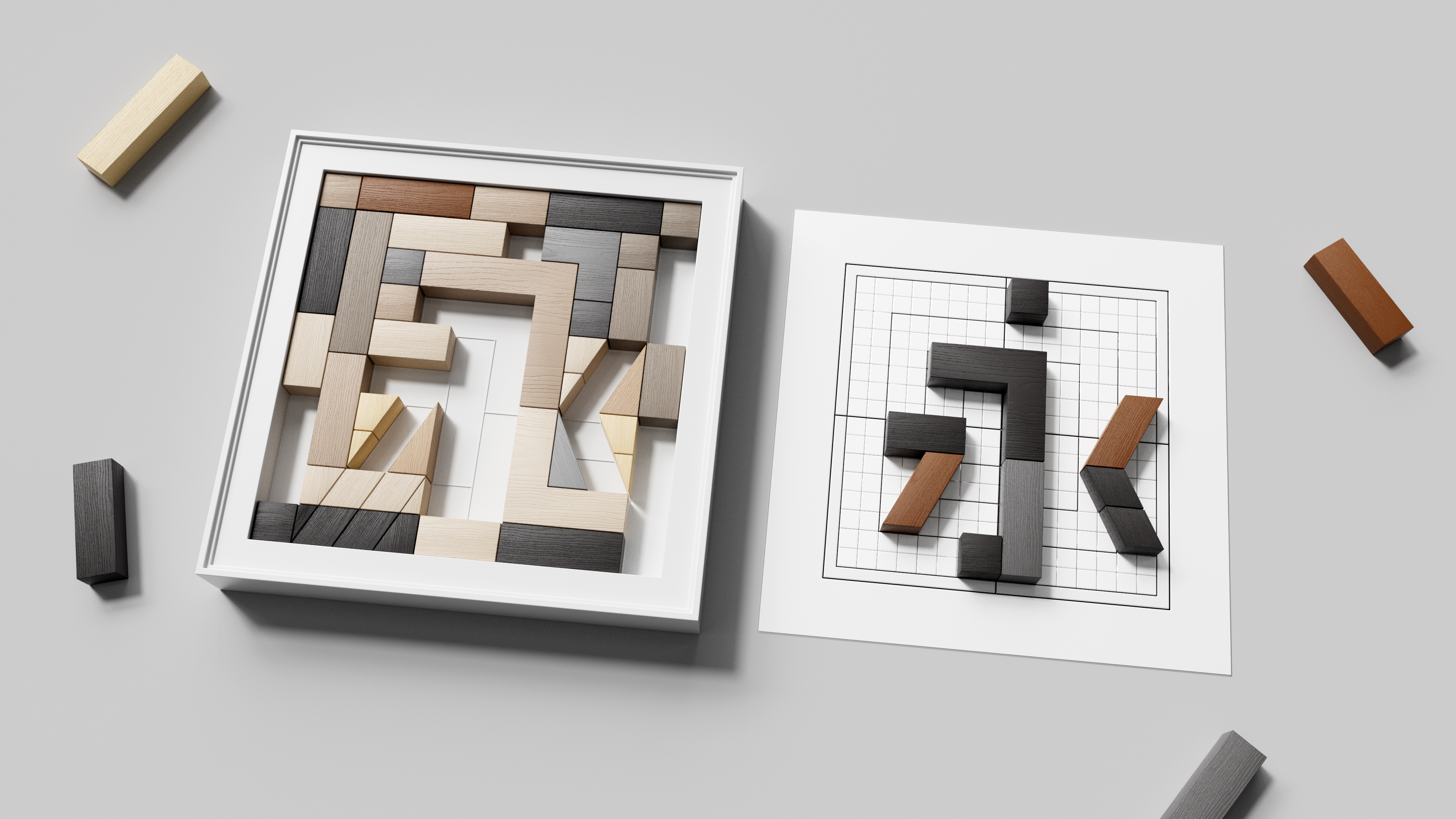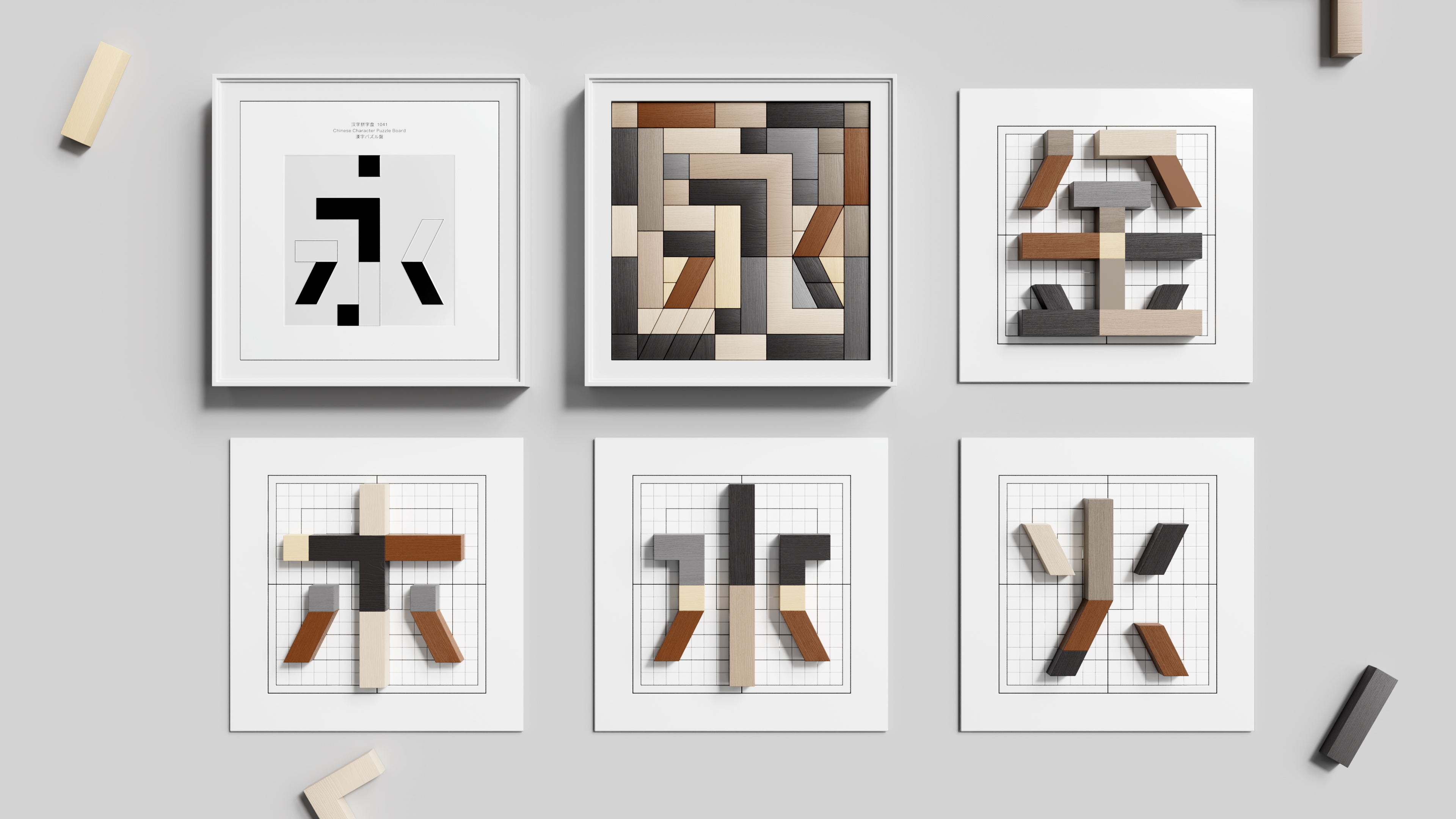 Chinese Character Poetry Puzzle Board for Kids When my daughter was three years old, she asked me if I could make a puzzle tray for her to play with and assemble Chinese characters. I was stunned. Although Chinese characters are square-shaped, their strokes are incredibly diverse—dots, horizontal lines, downward strokes, and捺(nà), varying in length and direction. How could these be transformed into a set of unified yet flexible geometric modules? While Song and Kai typefaces have rich stroke variations, they aren’t easily compatible for combination. So, I immersed myself in experimentation, trying repeatedly over several years, until I found inspiration in artistic sans-serif typefaces: refining the strokes into simple, standardized geometric units, then embedding these modules into small grid squares, much like a tangram. It’s more than just a character puzzle tray—it’s a tangible world of Chinese characters. Children can use these modules to form characters like “天” (sky), “地” (earth), and “人” (person), or they can think outside the box and assemble a flower, a bird, or a little house. As the strokes shift beneath their fingertips, their minds leap into action during play. Literacy is no longer about rote memorization—it becomes an exploratory journey filled with creativity and imagination. For a long time, the market has had tangrams and English letter puzzles, but there has always been a lack of hands-on toys truly designed for Chinese character启蒙 (qǐméng, enlightenment). This puzzle tray is not just a toy—it’s a key: unlocking the door to Chinese characters for children, while also nurturing hands-on skills, stimulating visual thinking, and inspiring creative potential through assembling and piecing things together. This year, I finally brought this gift to life and placed it in her hands.