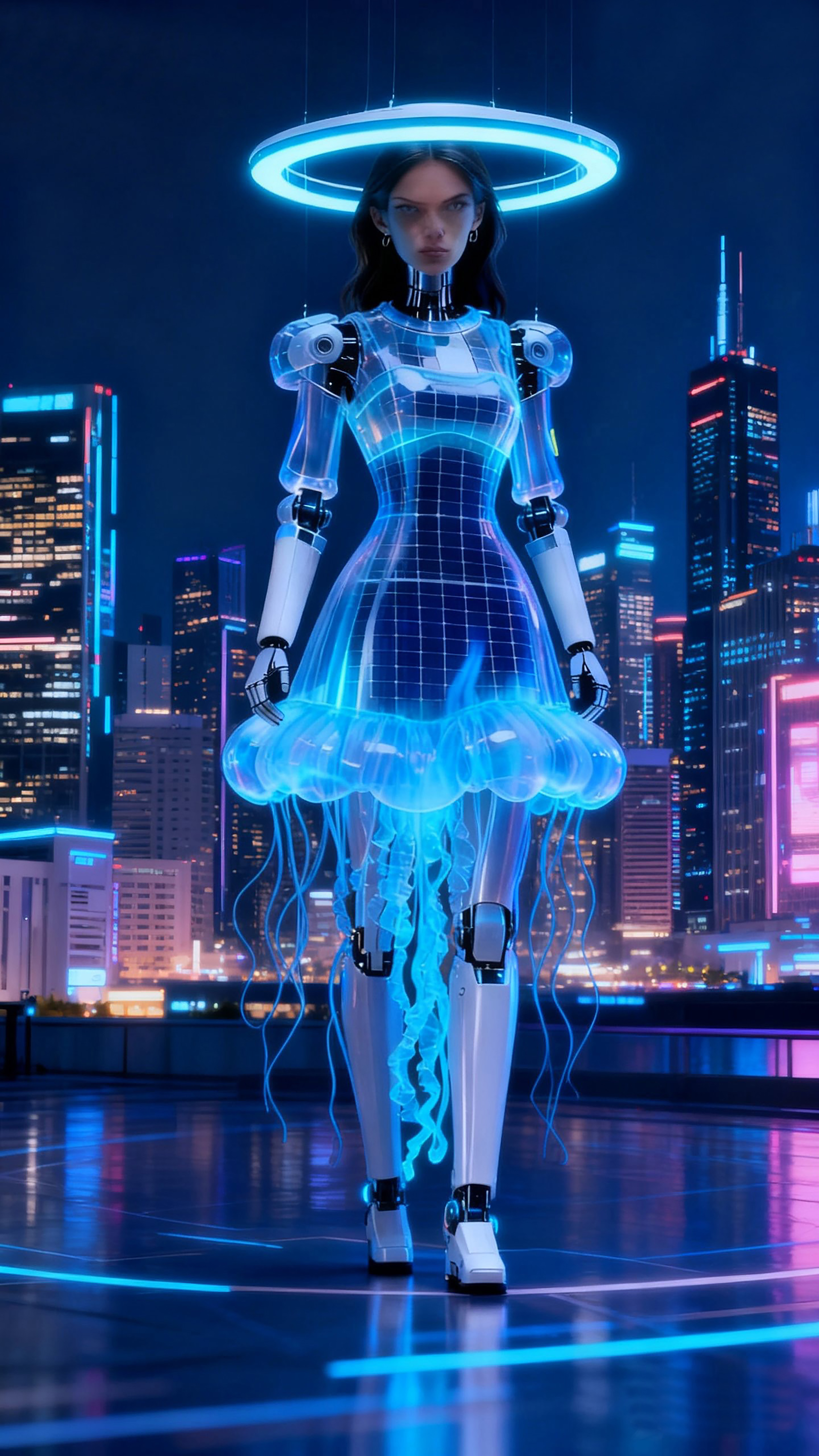 衣联智城 设计灵感来源于AI智慧城市生活的“守护者”,通过智能AI联网街景监视系统、空气净化功能、太阳能绿色应用、问询导航等功能将科技模块与服饰美学艺术融合,既通过实验性的功能集成实现未来穿戴设备的智能化,快速对接纺织、电子、智慧城市管理等业态。同时,以科技赋能衣物,让其成为连接人与智慧城市的纽带,用实际功能诠释“科技改变生活”,引发国际对智慧穿戴与城市治理融合的关注,加速未来感的AI智能城市生活。