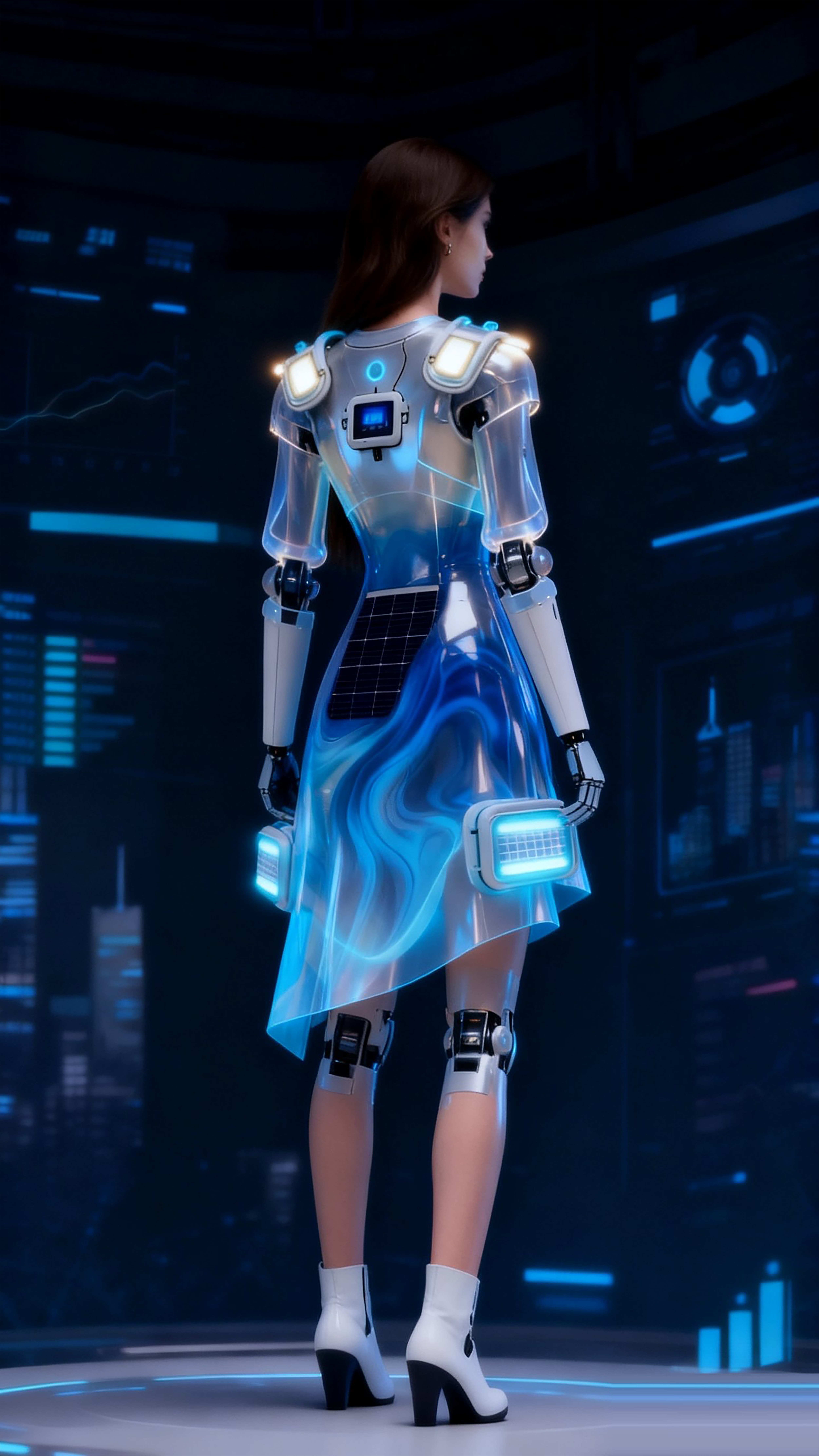 Yilian Smart City The design is inspired by the "guardian" of AI smart city life. It integrates technology modules with clothing aesthetic art through functions such as an intelligent AI-connected street view monitoring system, air purification, solar energy green applications, and inquiry navigation. It not only realizes the intellectualization of future wearable devices through experimental function integration, but also quickly connects industries such as textiles, electronics, and smart city management. At the same time, it empowers clothing with technology, making it a link between people and smart cities, interprets "technology changes life" with practical functions, attracts international attention to the integration of smart wearables and urban governance, and accelerates the futuristic AI smart city life.