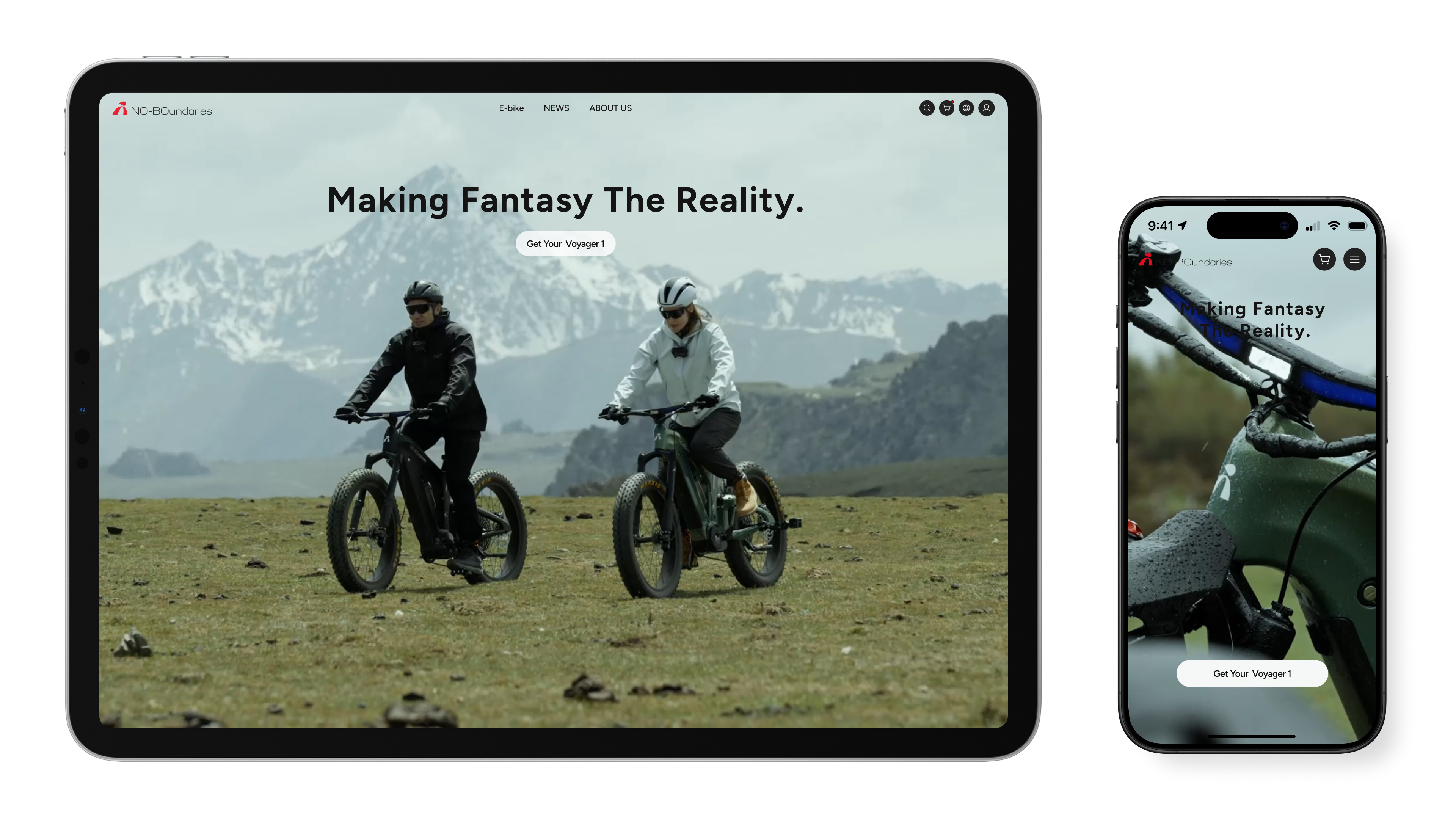 This project is the official website UI design for Noboundaries E-bikes. Inspired by the concept of “Beyond Boundaries · Freedom,” the design blends futuristic aesthetics with seamless usability. It streamlines the shopping process, ensures multi-device adaptability, and includes product comparison, color customization, and scenario simulation for interactive engagement. By featuring user stories and riding content, the site goes beyond product display to embody exploration and sustainability.