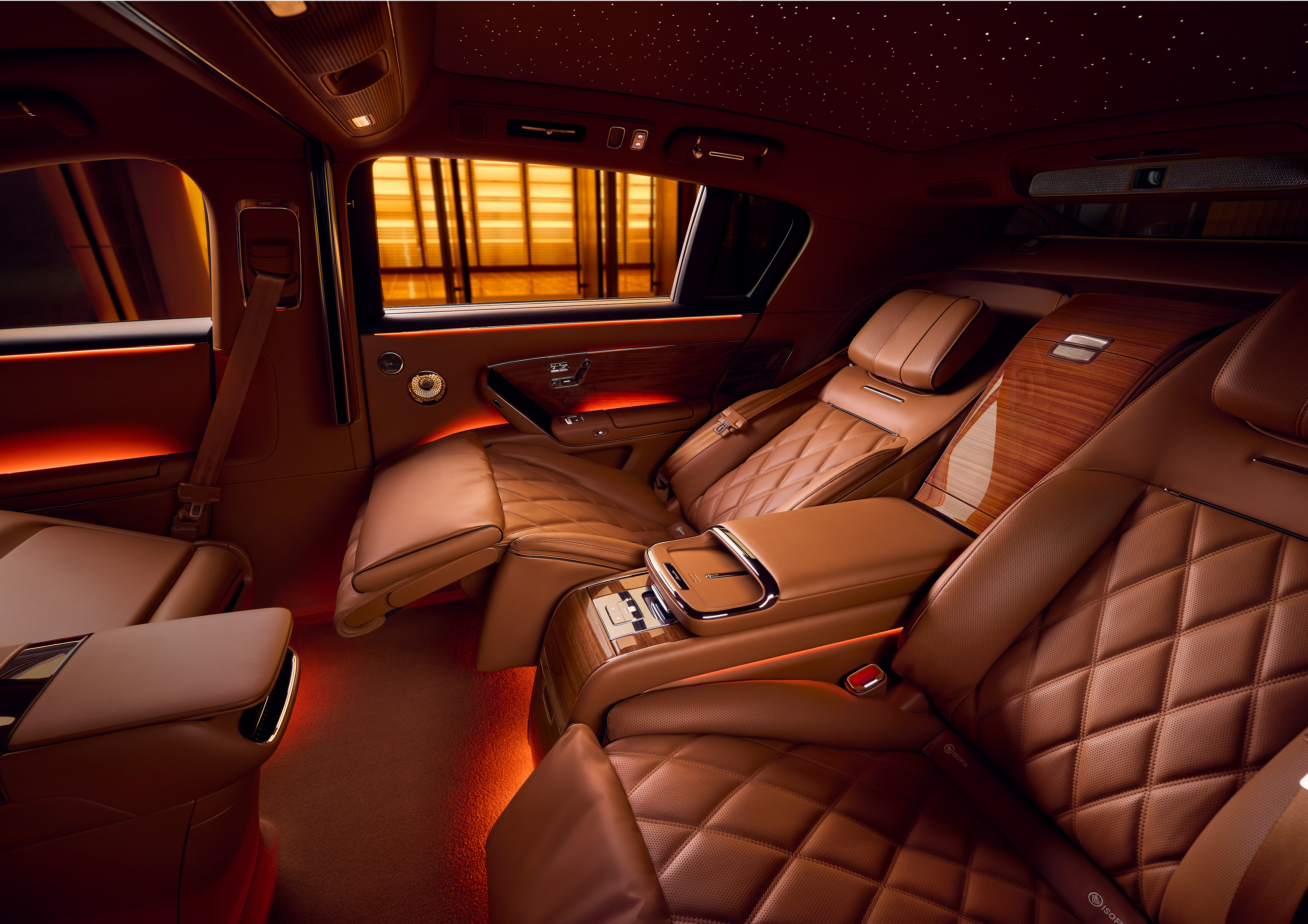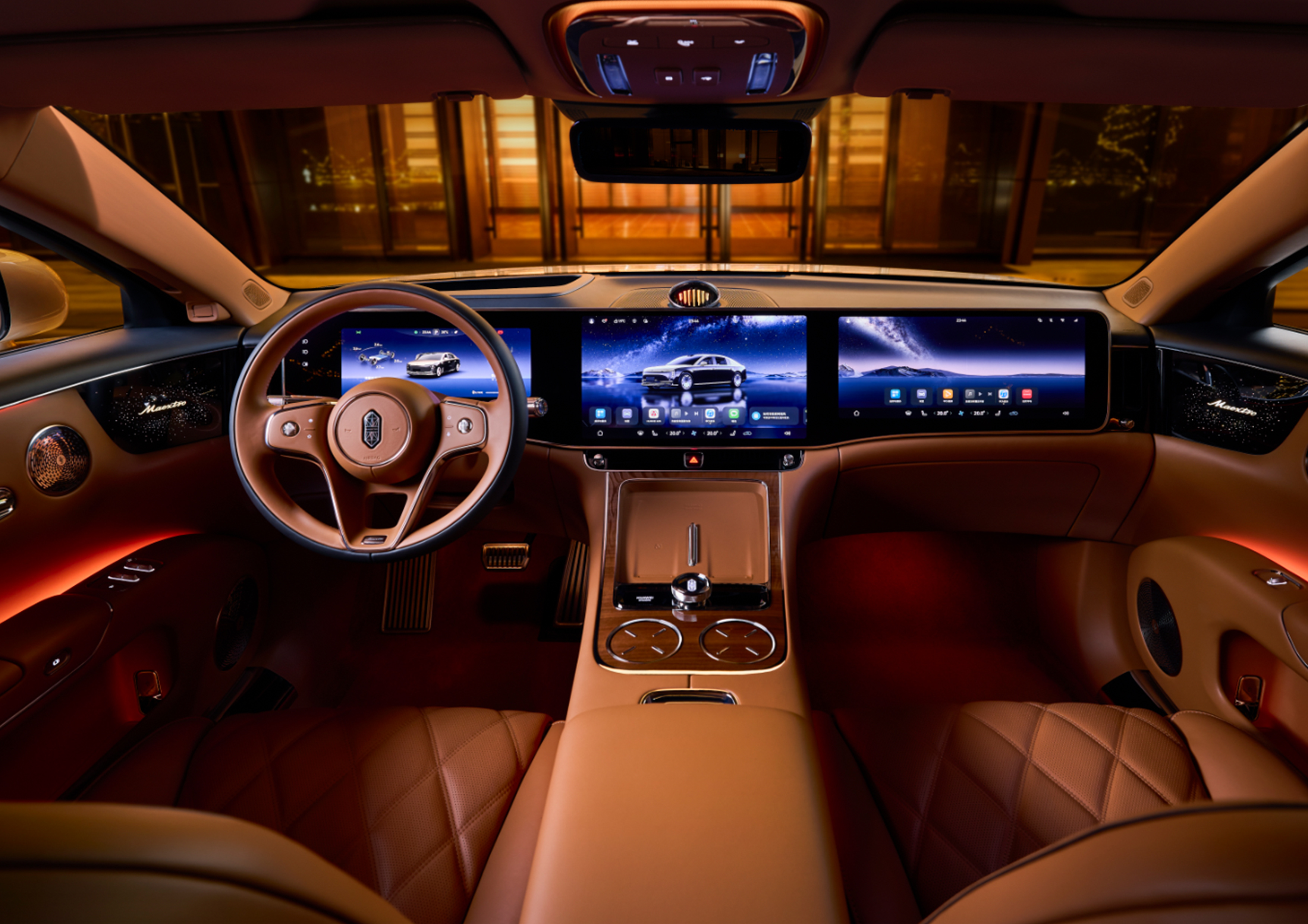 The S800 is an era-defining flagship. Conceived from a philosophy of cosmic expanse, its form is sculpted from the inside out, an architectural revolution that redefines the very meaning of space and unveils a vision of luxury that transcends time.A new architecture of proportion: The MAEXTRO S800's monolithic form was born from an obsession with the ultimate passenger experience, sculpting the vehicle from the inside out to achieve a seamless, indivisible whole. Stellar expanse headlights: Automotive-grade crystal headlights. Horizontally, the crystal elements possess unparalleled purity and translucence. Vertically, ADB and DLP modules are meticulously orchestrated, enhanced by multi-layered optical coatings and laser-etched artistry to evoke the brilliance of a star-filled galaxy. Nova handles: An elegant invitation to reach for the stars. These signature handles are more than an aesthetic flourish; they are a testament to a profound devotion to craft in every detail. Nebula scroll taillights: A mesmerizing dance of light and shadow. Multi-layered imaging technology creates an ever-shifting celestial tapestry. The nebula and its rings evolve with your moves, revealing a new, dazzling constellation with every glance.A sanctuary of sumptuous space: The cabin offers an unprecedented 2,200 mm of personal space upon a 3.4 ㎡ completely flat floor. The second row affords up to 1,240 mm of legroom and pioneers the sedan's first dual zero-gravity seating configuration.